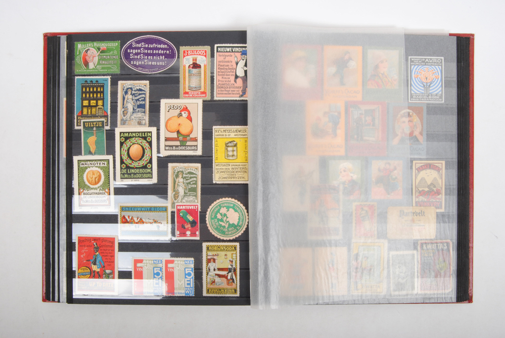 Two albums with ca. 300 inserted picture stamps. German and Dutch, ca. 1900-1930.