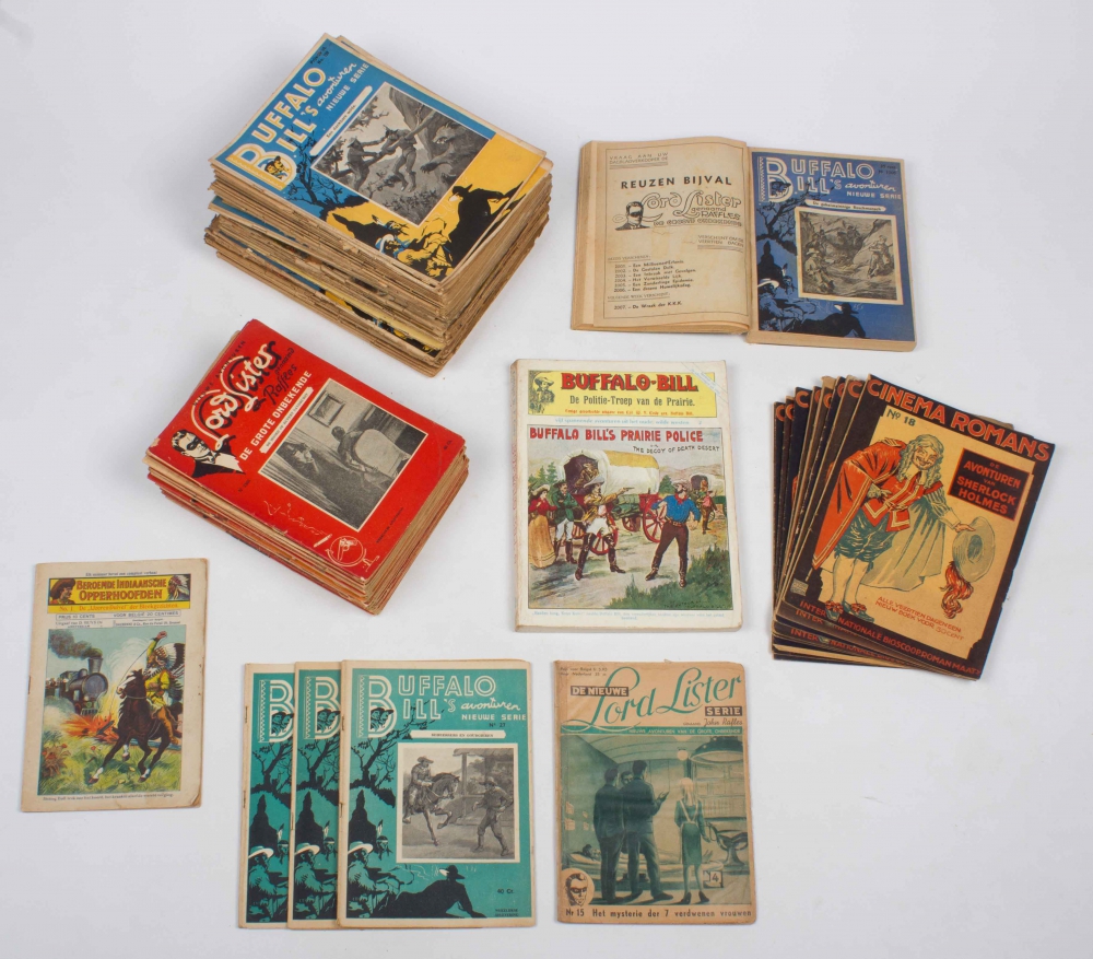 Ca. 65 copies of Buffalo Bill's avonturen, ca. 1930, stapled, 32 pp. + 37 copies of Nieuwe avonturen Lord Lister genaamd Raffles + Cinema Romans, 8x - and several other works.