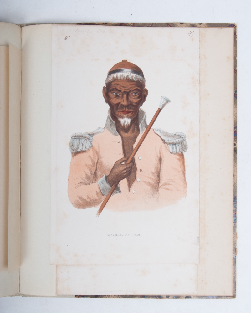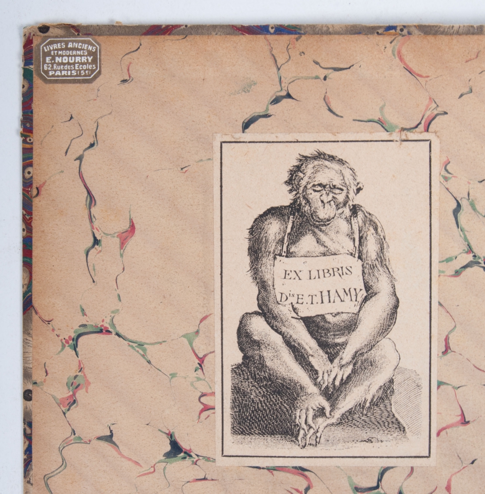 Lacks plates 6 and 7 (portraits of natives); top hinge vulnerable on inside. With ex libris of the famous anthropologist and ethnologist Ernest Théodore Hamy (1842-1908), founder of the Musée d'Ethnografique du Trocadero, Paris, 1878. He is the author of such works as "Crania Ethnica" (1875-1882) together with De Quatrefages, whom he succeeded. For extensive information on Hamy, see: https://fr.wikipedia.org/wiki/Ernest_Hamy.