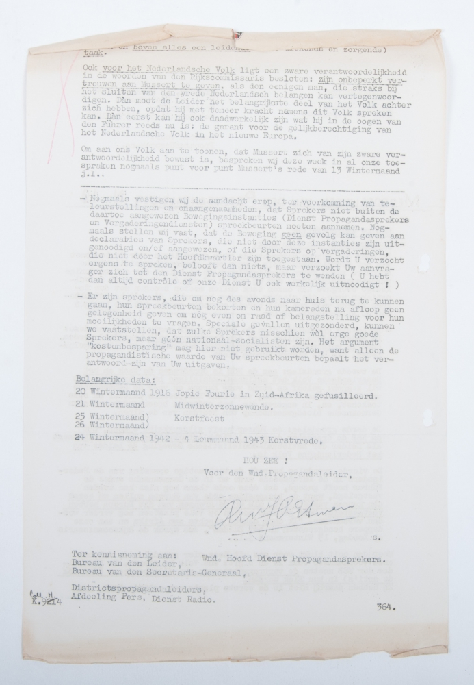 [N.S.B.] Mededeelingen van den Propagandaleider