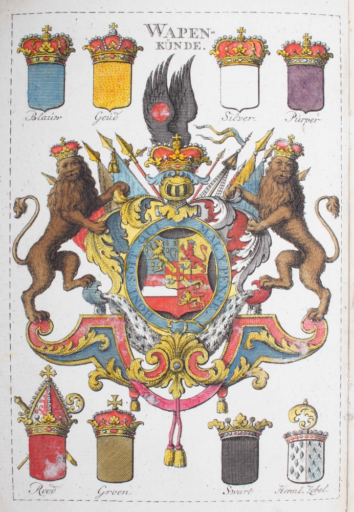 A title edition (with new title page) of the Ferwerda edition from 1759. Early and fairly rare heraldic instruction book with attractive frontispiece.