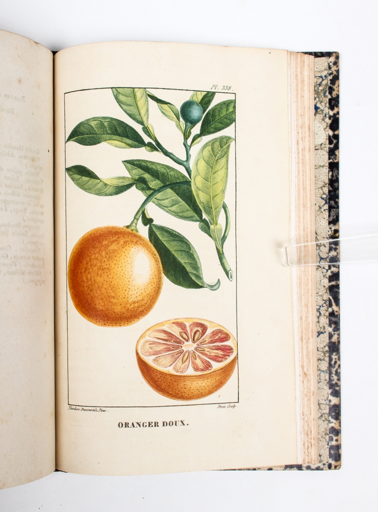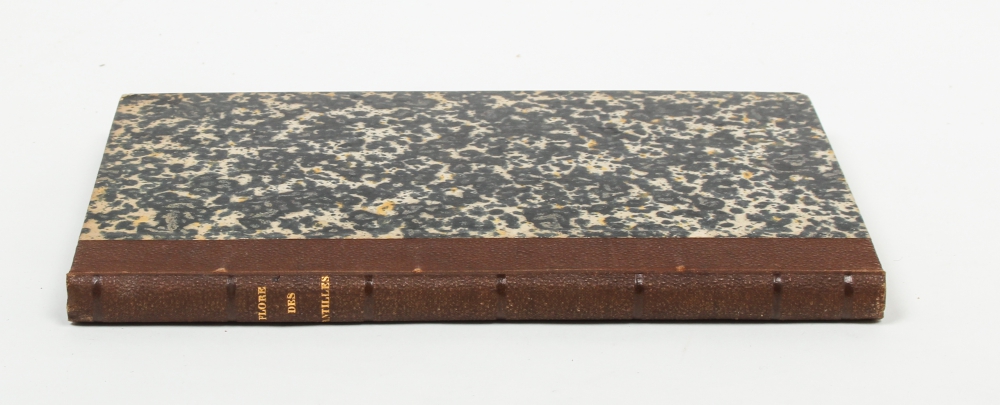 ou Traité des plantes usuelles des colonies Française, Anglaises, Espagnoles et portugaises. Peinte par J.Ch. Descourtilz. Tome premier. Paris, l'Auteur etc., 1821, fragments paged 43,(1); 19; 129-140; 165-200 p., with 15 colour-printed plates, later half cloth.