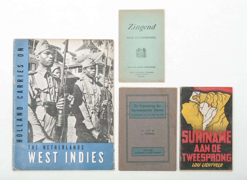 Niet in den handel verkrijgbaar. Uitgave Territoriaal Commando (Dienst O en O), Suriname. Printed by Drukkerij Eben-Haëzer in Paramaribo, 1944, 46,(2) p., original cover, small 8vo.