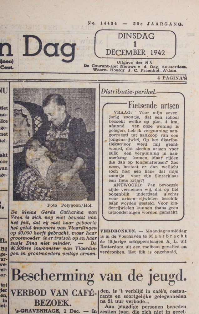 Volume 48-52 (war years). Series of more than 900 (of ?) issues of the morning edition and/or the evening edition or the city edition (from 19 June 1942), published in Amsterdam, 4 May 1940 to 30 December 1944, up to November 1942 size 60 x 45 cm., afterwards 45 x 30.5 cm.