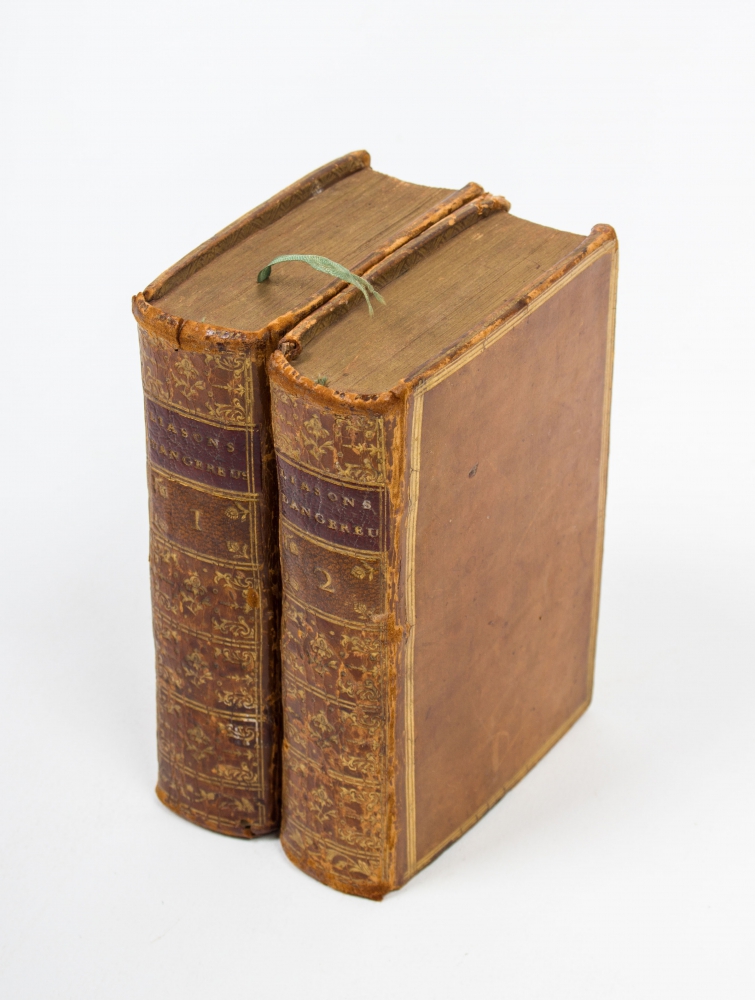 Good copy with owner's name "F. de L.P. 1823" in pen on the free endpaper; marginal water stain at the end of volume 2; bindings with some traces of use such as sm. tears (on hinges), cardboard visible on the outer corners.