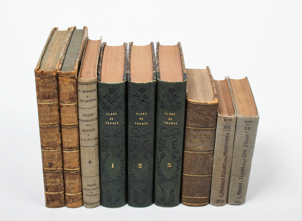 incl. (1). Flore de France, ou Description des plantes qui croissent naturellement en France et en Corse., par M. Grenier (...) et M. Godron (...). Paris, J.-B. Baillière/ Besançon, De Sainte Agathe Aîné, 1848-1855, 3 volumes, (6),766; (4),760,(2); (4),779,(3) p., contemporary uniform half morocco with gilt back by Appav (Gisors).