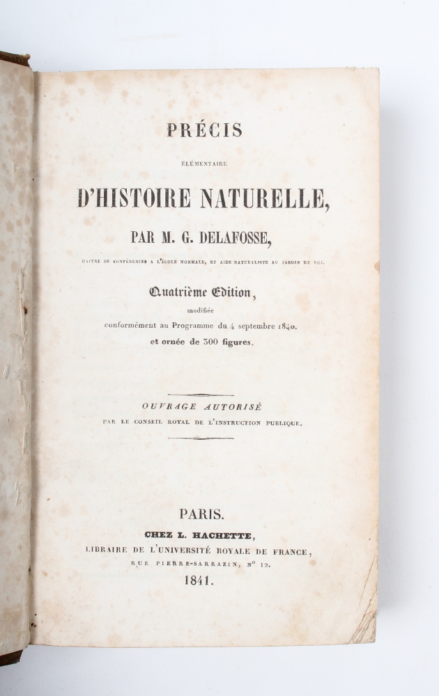 Somewhat foxed, a lot of markings in pen in margins; several sm. other defects. And with: (2). Répertoire des plantes utiles et des plantes vénéneuses du globe Augmenté d'un atlas contenant 128 planches. Par E.A. Duchesne. (...). Nouvelle édition. Brussels, Meline, Cans et Comp., 1846, 2 volumes, text volume: XLV,(1),505 p., atlas: 20 p. and 128 lithographed plates, contemporary uniform half leather with ribbed, gilt back, large 8vo. Library stamps on titles, 2 plates with one corner missing, bindings slightly worn. And with another 4 similar works (total 6 in 9 bindings).