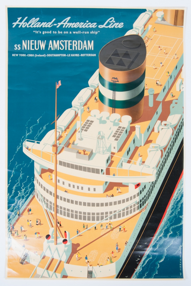 Holland-America Line. SS Nieuw Amsterdam. Joh. Enschedé en zonen. April '54. 96 x 62 cm.