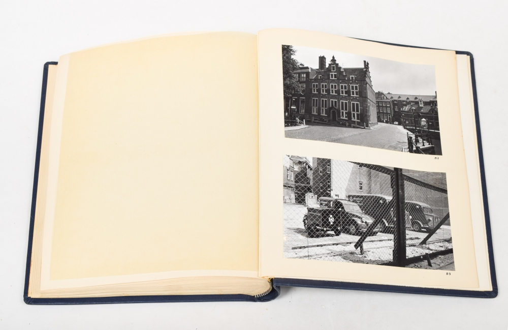 Presented at the farewell of Prof. Mr. J. van der Hoeven as chancellor of the University of Amsterdam, 1968. Album with 83 pasted b/w photos of faculty buildings of the University of Amsterdam.
