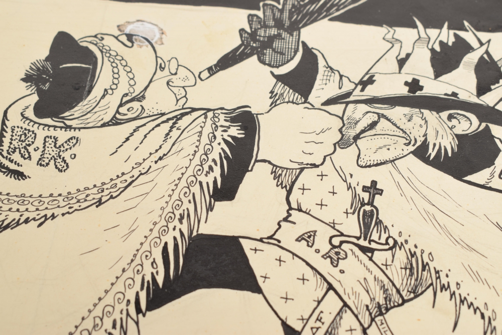 'R.K. vs A.R. "Doodstraf, Militarisme, Koalitie. Ontwapening"'. Christmas print, 20s. India ink. 24 x 30 cm.