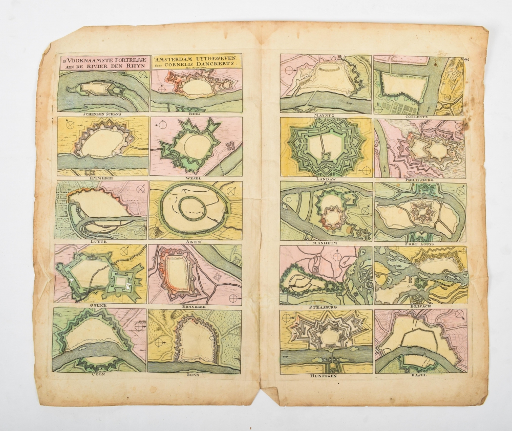 [Fortifications] 2 engravings: "D'Voornaamste Fortresse aen de rivier den Rhyn".