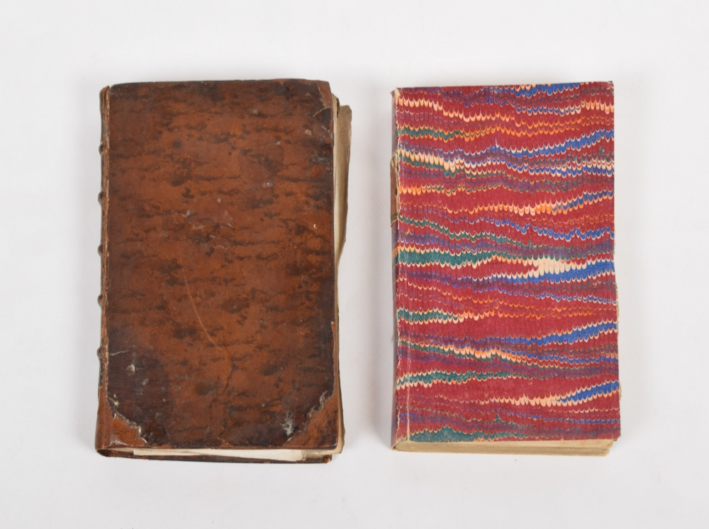 Several maps slightly browned/ duststained and frayed in folding margin; several maps with antiquely repaired tear. Top endpapers have been replaced, binding restored on spine and corners. Still a fair copy with contemporary owner's inscription of (J. de) Landtsheer (possibly the portrait painter) on half title and reverse frontispiece. (2) Atlas des enfans; ou Méthode nouvelle, courte, facile et demonstrative, pour apprendre la geographie. En XXII cartes enluminées, avec une nouveau traité de la sphere (...). Amsterdam, J.H. Schneider, 1779, (4),XII,284 p., with title vignette, 6 (of 22) folding, handcoloured maps and another 2 plates, later wrapper with reused morocco letterpiece. Sold w.a.f. (total 2).