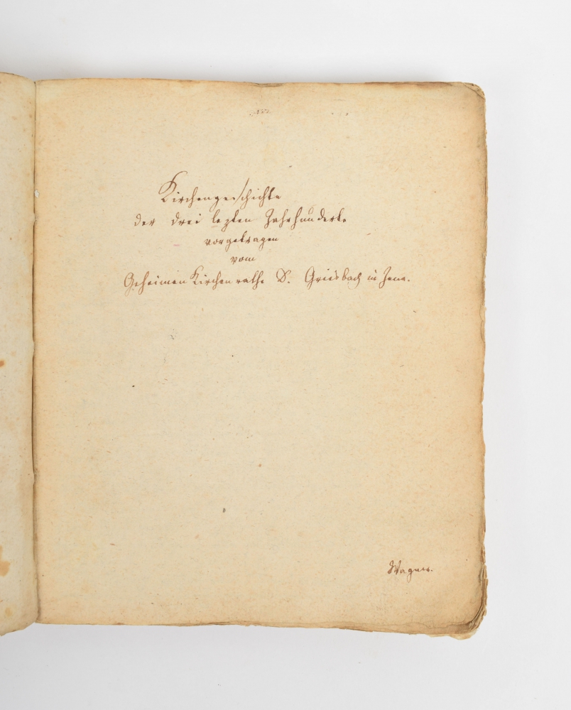"Vorgetragen vom geheimen Kirchenrathe D. Griesbach in Jena." Complete manuscript with title page, dated 12 March 1804 on the final page (349), contemporary wrapper, 4to (light browning; here and there duststained in margins).