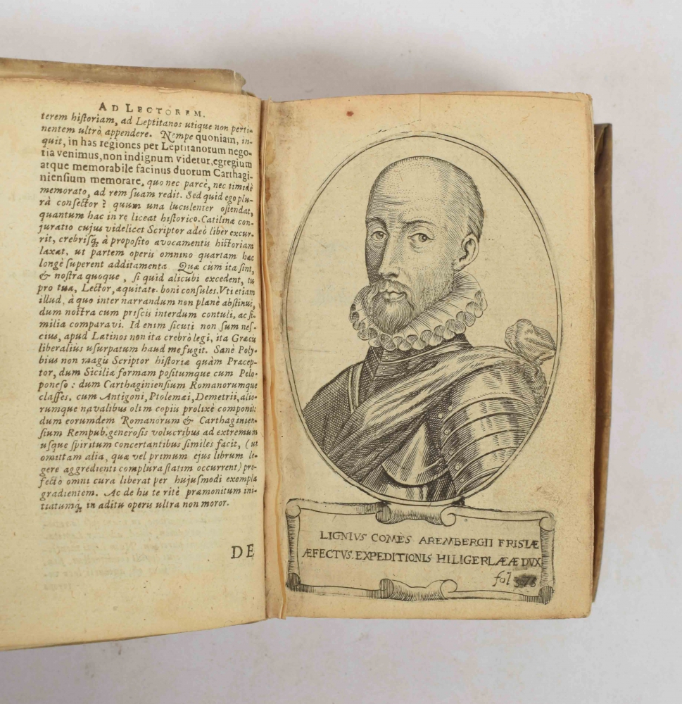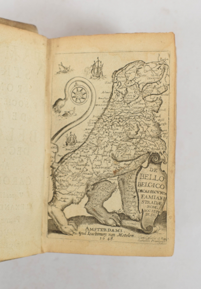 e Societate Jesu De Bello Gallico Decas Prima (et) Secunda. Ab exessu Caroli V. Imp. [and] Ab initio Praefecturae Alexandri Farnesii Parmae Placentiaeque Ducis III. An. MDLXXVIII, Usque ad An MDXC. [2 volumes, both with the "LEO BELGICUS" as frontispiece]. Amsterdam, Joachim van Metelen [and] Antwerp, Weduwe Cnobbaert, 1648.