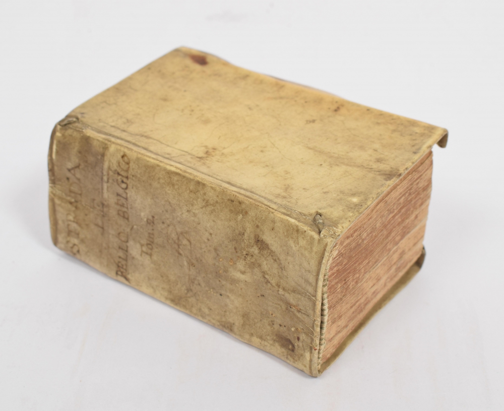 16mo, overlapping vellum, 2 volumes, title on spine in hw., 2x title, 2x illus. frontispiece with LEO BELGICUS and Amsterdam (vol. 1) and Antwerp (vol. 2) address and numerous full-page portraits, all in copper engraving. Shabby bindings, minor (water)staining. Engravings in good condition. (total 2)