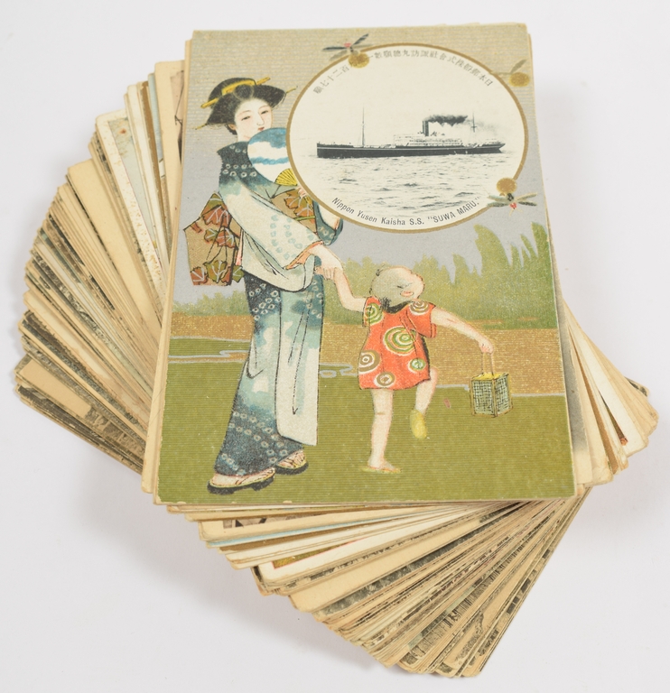 Lot with ± 100 picture postcards, all pre-1940, mostly Japanese, incl. several cards "Nippon Yusen Kaisha S.S. "Suwa Maru", Geishas and city/ temple scenes of Kyoto, Hiroshima etc.