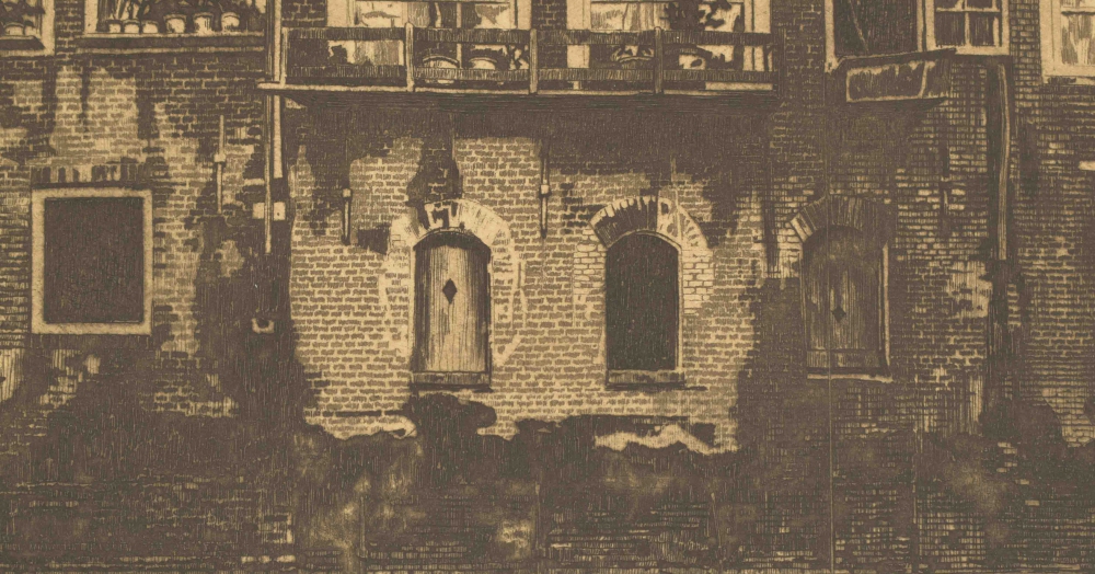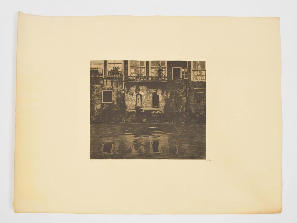 Houses in Dordrecht. Etching. 26 x 31 cm. Outside leaf 51 x 67.5 cm. Publ. E.J. van Wisselingh & Co, Amsterdam-Leiden. Signed b.r., numbered 86.