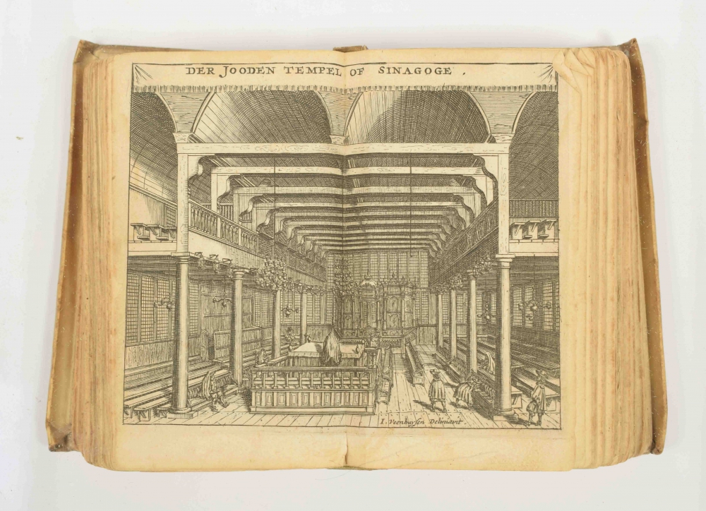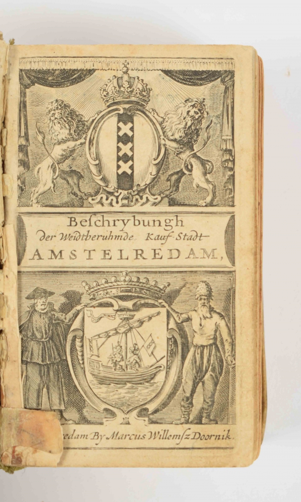 16mo, turned vellum, illustrated frontispiece with the arms of Amsterdam etc., title with small vignette, (18),567,(1) pp., 57 engravings (of 60?) of which 3 folding, several full-page and remainder double-page, one folding engraving and 2 others damaged. The appendix after p. 544 with consecutive paging by P.V. Aengelen. Shabby and incomplete copy (in terms of engravings), loose in binding, ann. and stamps.