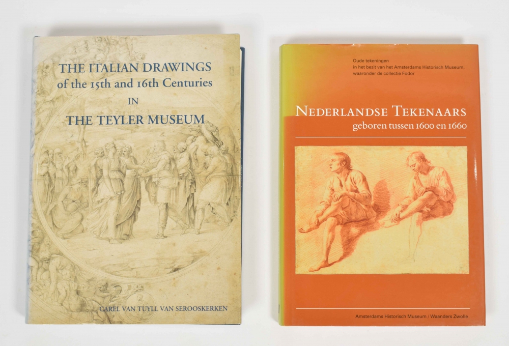 (2) Dutch Drawings of the Seventeenth Century in the Rijksmuseum, Amsterdam. Artists born between 1580 and 1600. Amsterdam/ London, Rijksmuseum/ Merrell Holberton, 1998, text vol. with 248 p. and plates vol. with more than 500 (coloured) illustrations on plates, original uniform cardboard with dust jacket, 4to, together in slipcase. And with 3 similar other works and added: The Italian Drawings of the Fifteenth and Sixteenth Centuries in the Teyler Museum. Carel van Tuyll van Serooskerken (Haarlem etc., 2000, original cloth with dust jacket uniform to (1)). (total 5 in 6 vols.)