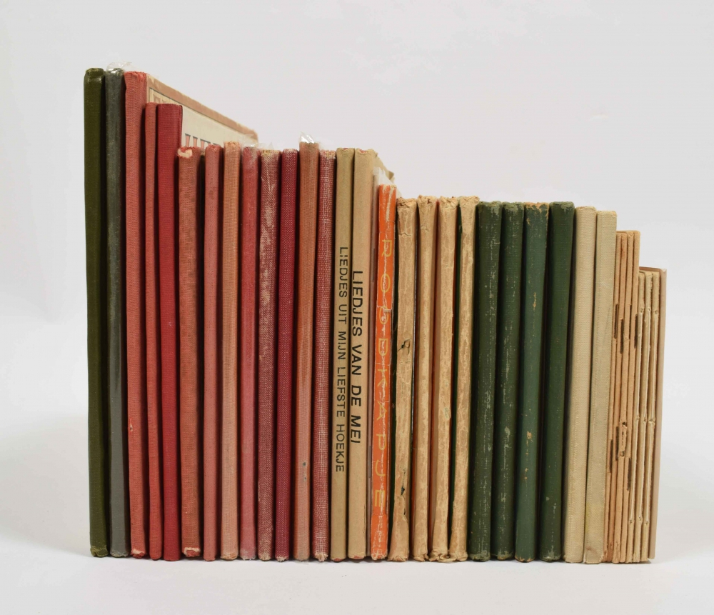 Vroolijke Rijmpjes, Vroolijke Wijsjes, Fleurige Versjes (series of 3). Versjes van P.J. Cohen de Vries. W. de Haan, Utrecht, c. 1925 + Zomer, Herfst, Lente, Winter. Series of 4. W. de Haan, Utrecht, 1910-11. Series in fairly good condition with light traces of use + Liedjes uit mijn liefste hoekje. W. de Haan, Utrecht, 1928. Bound with clean dust jacket + Liedjes van de Mei, [idem] - and 25 more.