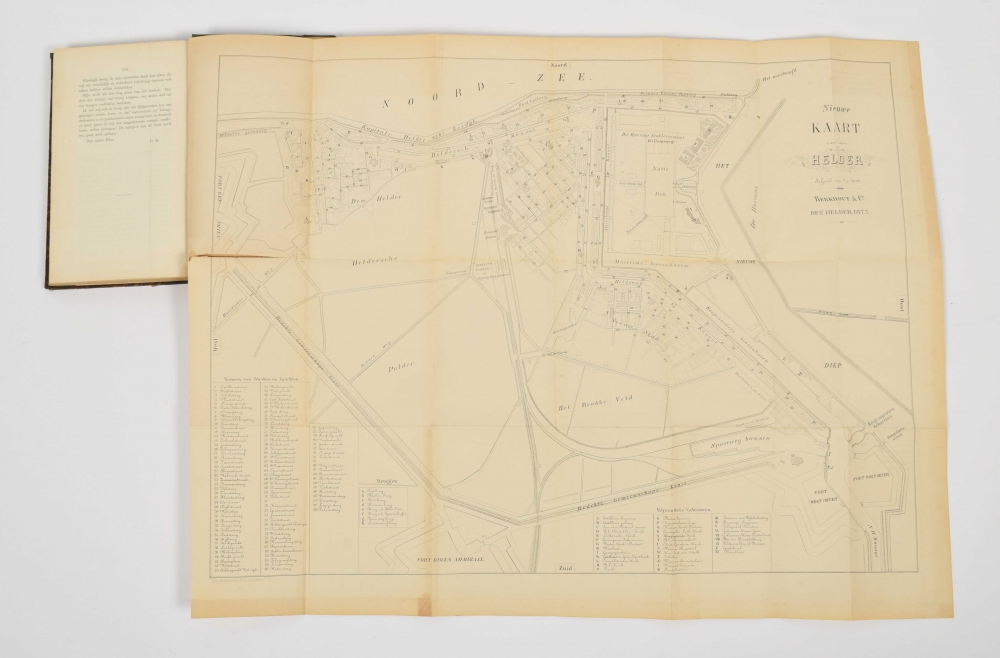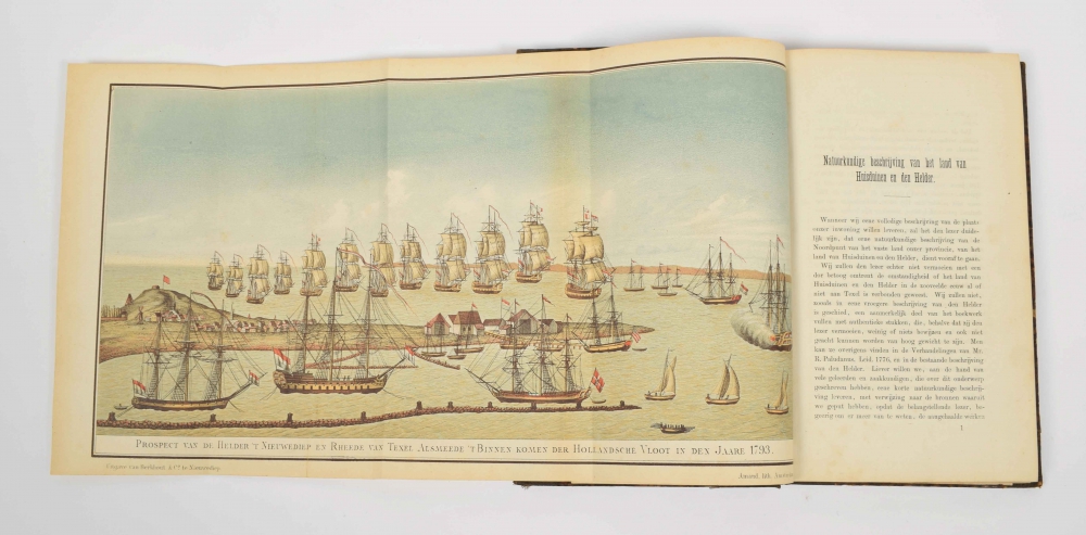 met een kaart en twee [folding] platen, door D. Dekker. Helder, Berkhout & Co, 1875. xiv, 334 p. 4to, bound in halfcloth.