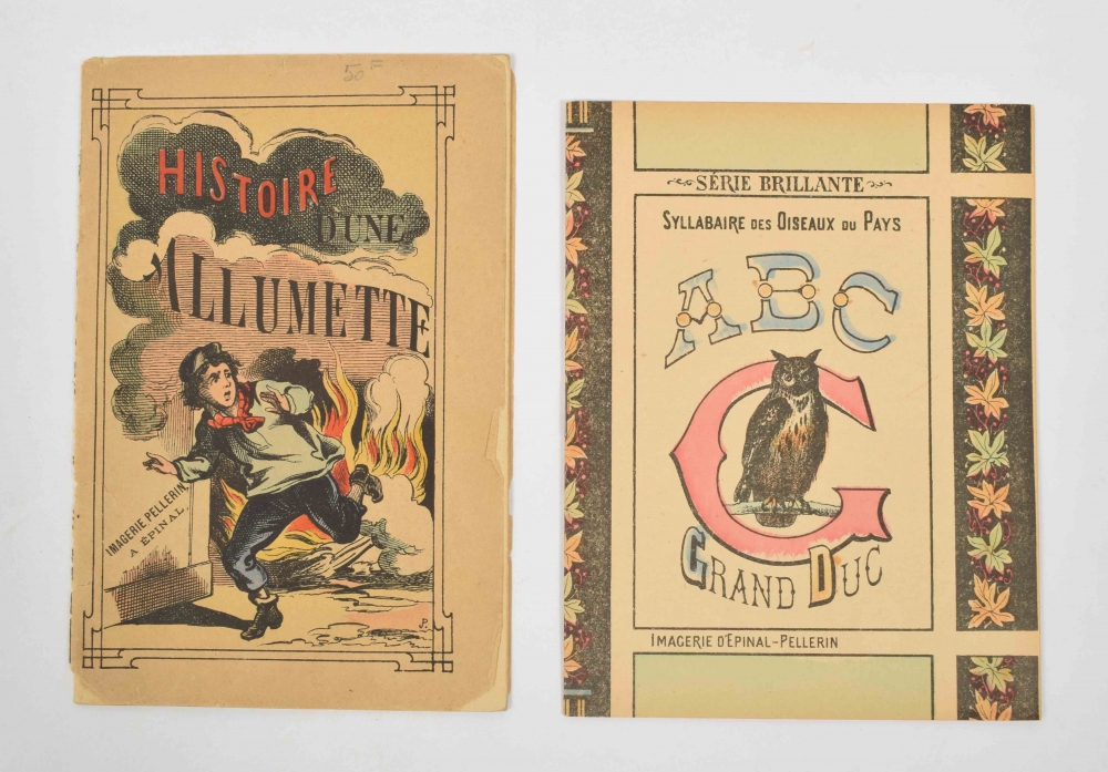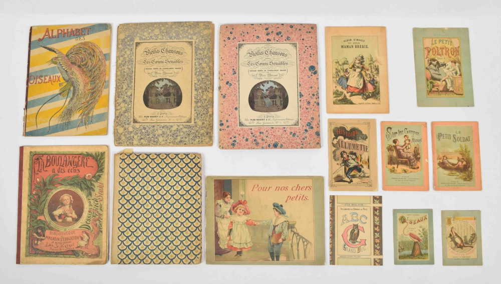 La boulangere a des écus. Bibliothèque et magasin d'éducation et de recréation. J. Hetzel, Paris, 1894. Boards sl. stained, renewed endpapers, pages expertly reset with strip of paper + ABC Grand Duc. Imagerie d'Épinal-Pellerin. 8vo, stapled, c. 1910 + Histoire d'une Allumette. Imagerie Pellerin, c. 1900. Front and back loose from staple - and 10 more.