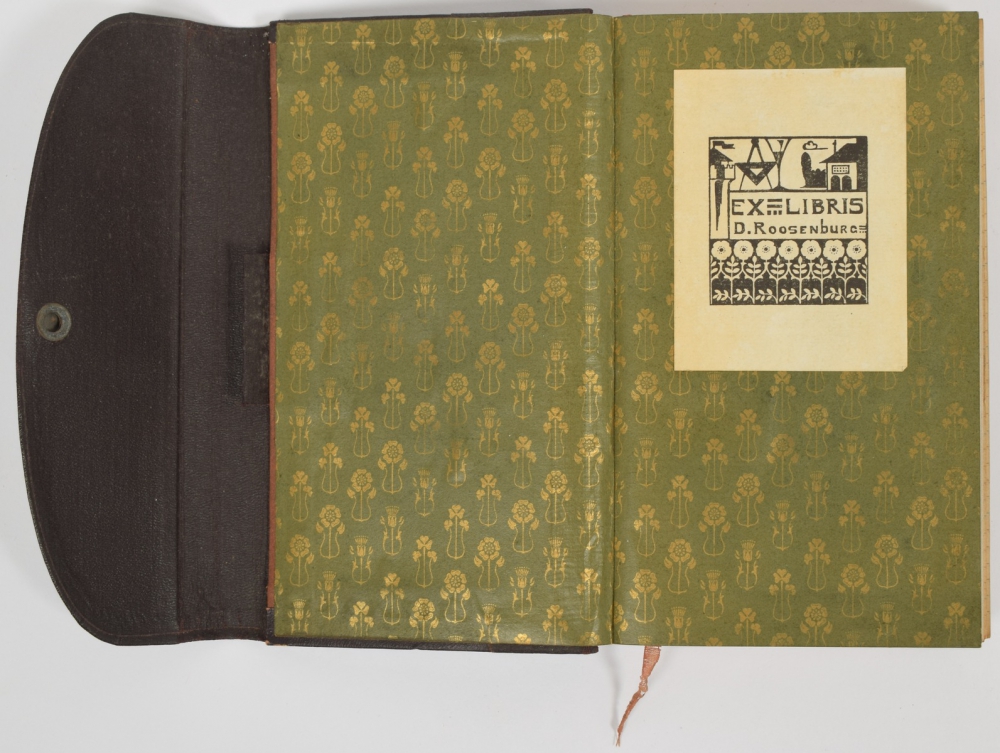 ± 90 p. with annotations/ letters in pen, several pages of comments in another hand (in pencil) of friends/ his beloved, included in the agenda part of the book Wellcome's medical diary and visiting list 1907, with on the first page the printed text "1907 This book belongs to [filled out by hand:] Dirk Roosenburg Technisch Stud. Markt 42 Delft" and with bookplate of Dirk Roosenburg mounted to endpaper, original cloth with dropback lid with button, all edges gilt, small 8vo.
