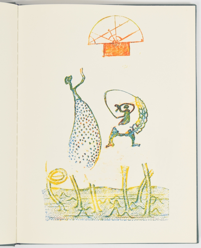 Auswahl der Texte von Ernst und Werner Spies. Stuttgart, Manus Presse, 1970. 78 pp., with 36 (mostly full-page) colour lithographs by Ernst, orig. gilt blue cloth in slipcase, folio. Printed in an edition of 1000.
