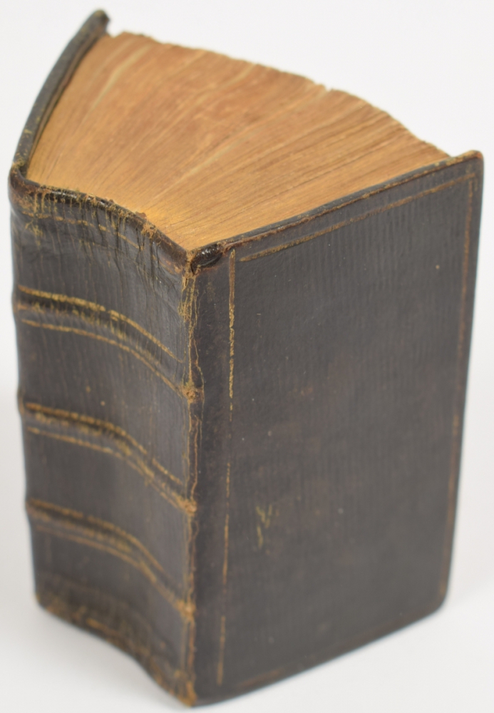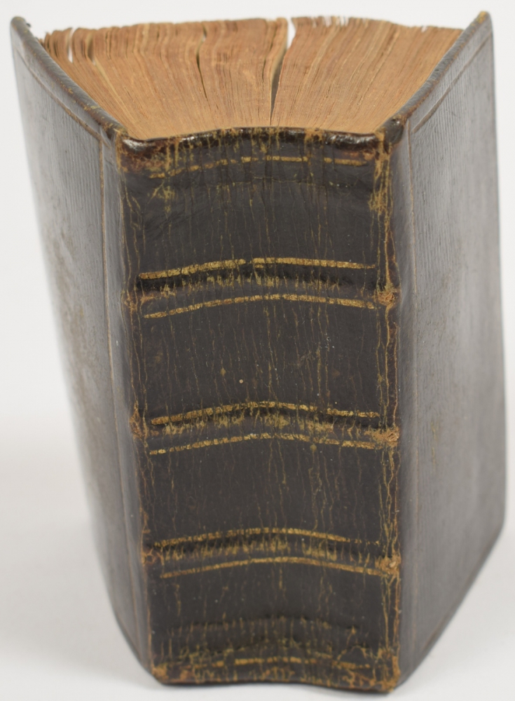 Small water stain to several pages at the beginning. Approbated via the "Acte van consent" with the signature of J.J. Kelder. This edition not in PiCarta, which does list an Amsterdam edition "by H. Brandt, D. onder de Linden, P. Schouten, de wed. O. van Grafhorst, J. de Groot, en compagnie", 1777. Our book is not a title edition thereof, but a separate publication in smaller size. Bound with: Evangelische Gezangen, om nevens het boek der psalmen (...) in de Nederlandsche Hervormde Gemeente gebruikt te worden (...). The Hague, Erven J. Allart, 1818, (22),436 p. Approbated with signature in pen by A.L. Jorissen on reverse of title. Bound between the paging of Eigen Geschrift Davids van de Psalmen. Very rare, one copy in PiCarta.