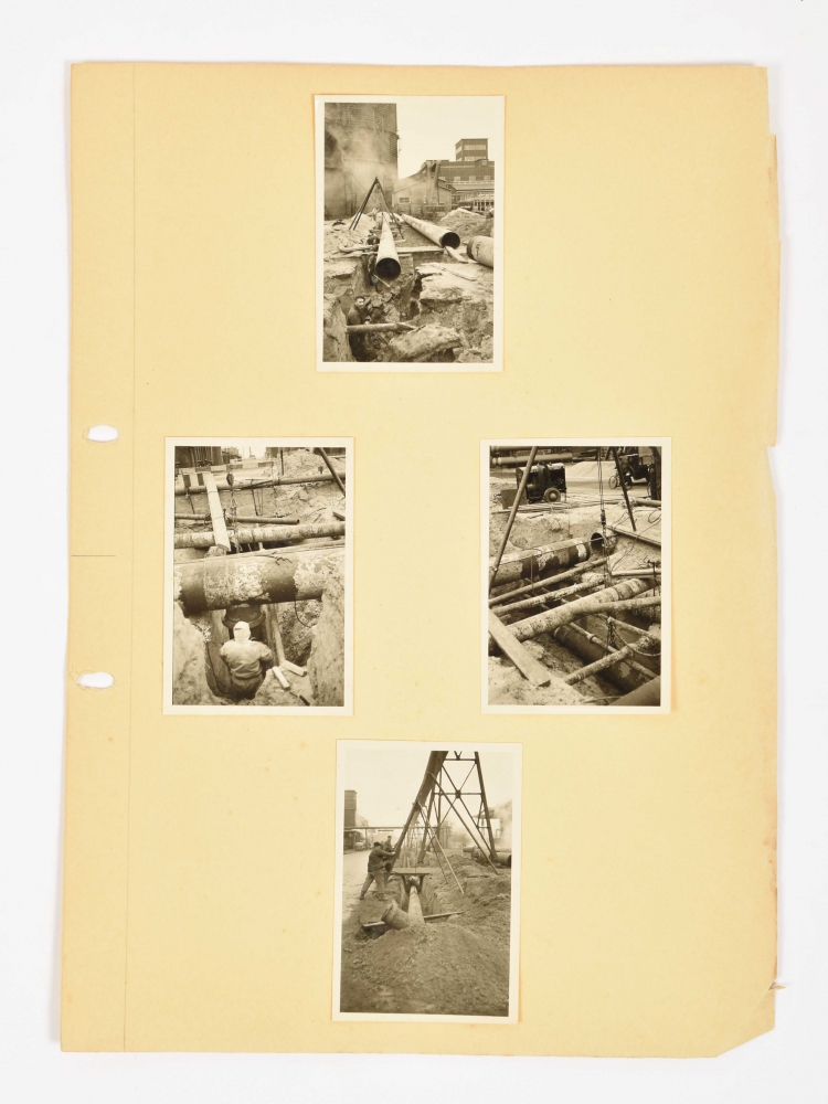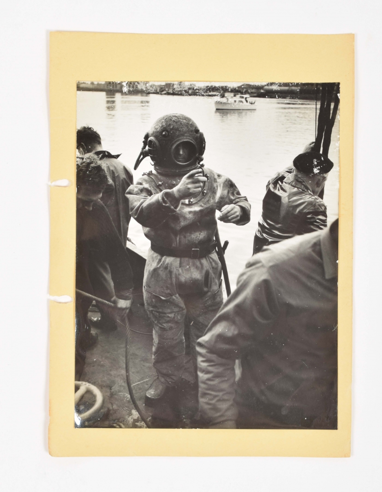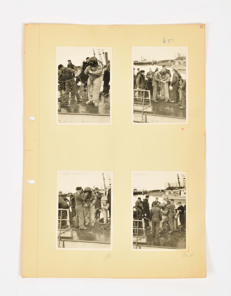 Album with a photo report in ± 470 photos in various sizes of the placement of underwater pipework in the North Sea Canal. Incl. several fine snapshots of divers. Photos mounted on paper and inserted in ringbinder.