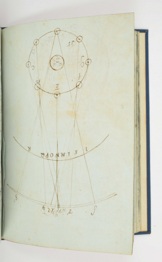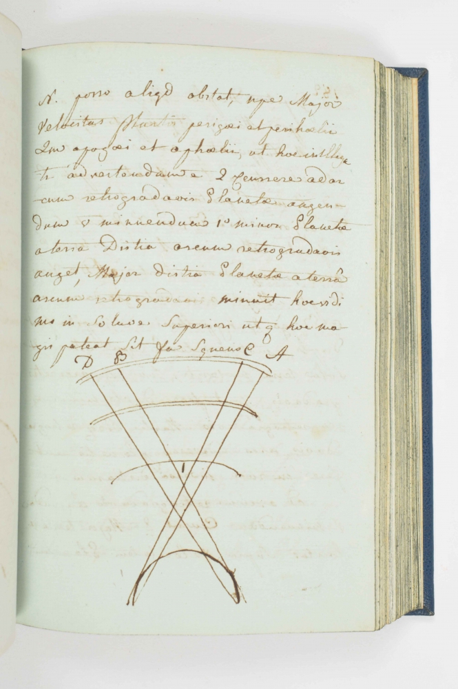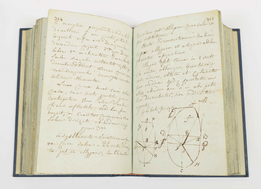 Manuscript in pen and ink in Latin on light-blue paper, c. 1800, (2),338,(2) p., with several illustrations, modern full blue leather in old style with gilt and ribbed back, 18 x 12.5 cm.