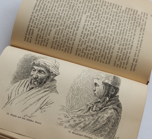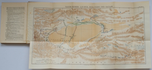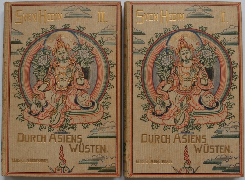 See the Dutch description: Sven Hedin, Durch Asiend Wüsten. Drei Jahre auf neuen Wegen in Pamir, Lop=nor, Tibet und China. In twee delen. F.A. Brockhaus, Leipzig, 1919. Hardcover. 236 + 246 p. Incl. 107 afbeeldingen in zwart-wit en 3 (uitvouwbare) kaarten.