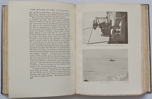 'With an introduction by Hugh Robert Mill, D.Sc. an account of the first journey to the South Magnetic Pole by Professor T.W. Edgeworth David, F.R.S.' Lichte verkleuringen aan de randen van de pagina's, verder mooie exemplaren. (totaal: 2).