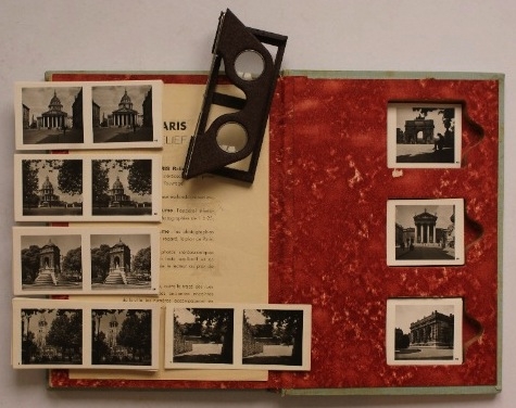 See the Dutch description: P.D. Espezel, Editions Chantecler, Paris, 1945. 4to, 84 p., met 100 stereofoto's en een stereoscoop in uitsnede binnenzijde kaft aan voor- en achterzijde. Incl. inlegvel en de uitvouwmap van Parijs. Bijzonder mooi exemplaar.
