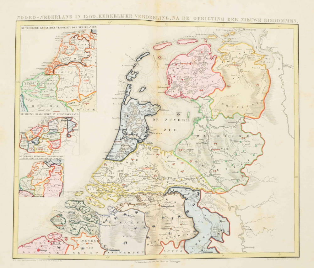 van de XVI eeuw tot op heden. Mr. G. Mees. Rotterdam, Van Der Meer & Verbruggen and Verbruggen & Van Duym for the last 4 instalments, 1851-1865. Folio edition in 15 loose instalments with green wrapper in cased portfolio with ties and loosely added the spine with title and both cased boards (to be bound at a later time). Title on the portfolio and on the individual instalments.