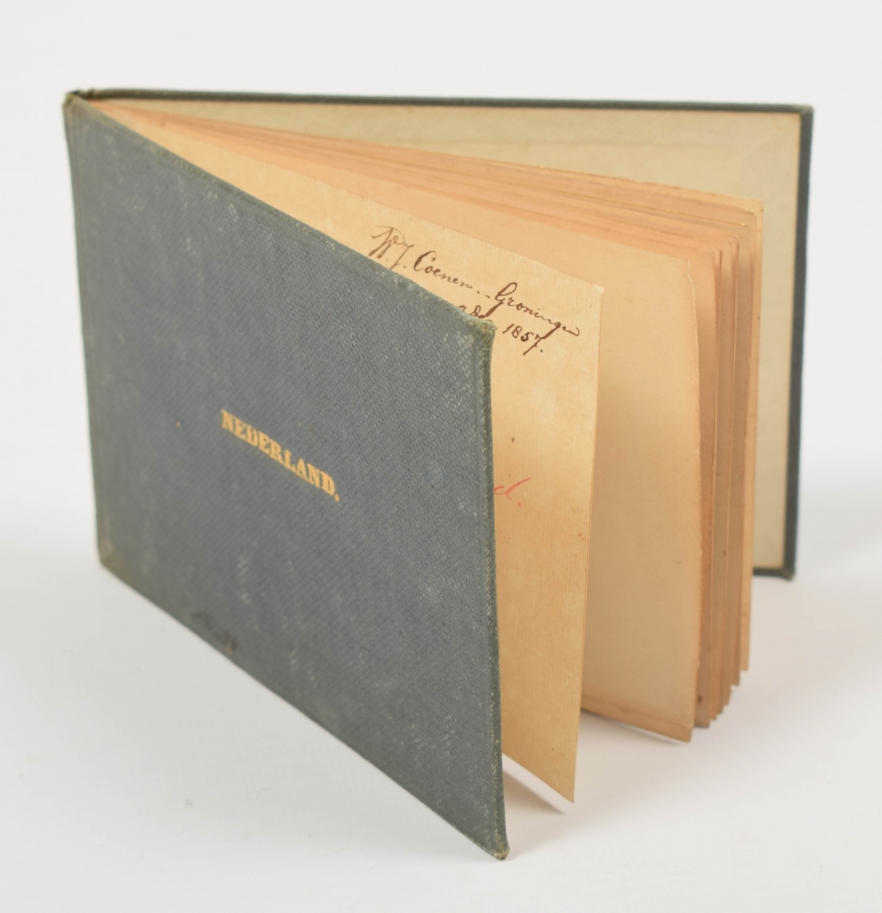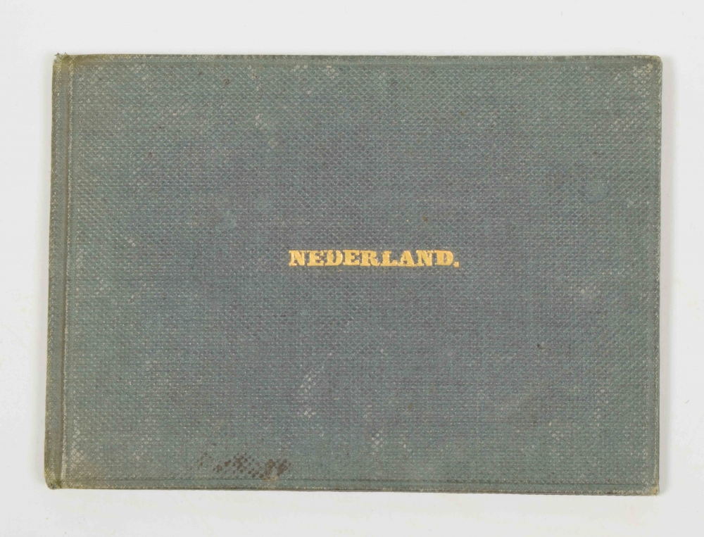 13 lithographed maps comprising a general map of the Netherlands, 10 provinces, the Duchy of Limburg and the Grand Duchy of Luxembourg. The general map entirely handcoloured, the provincial maps, Limburg and Luxembourg with coloured outlines. Name and ann. to endpaper, title page with frayed tail edge. Fine binding; very good copy, scarce.