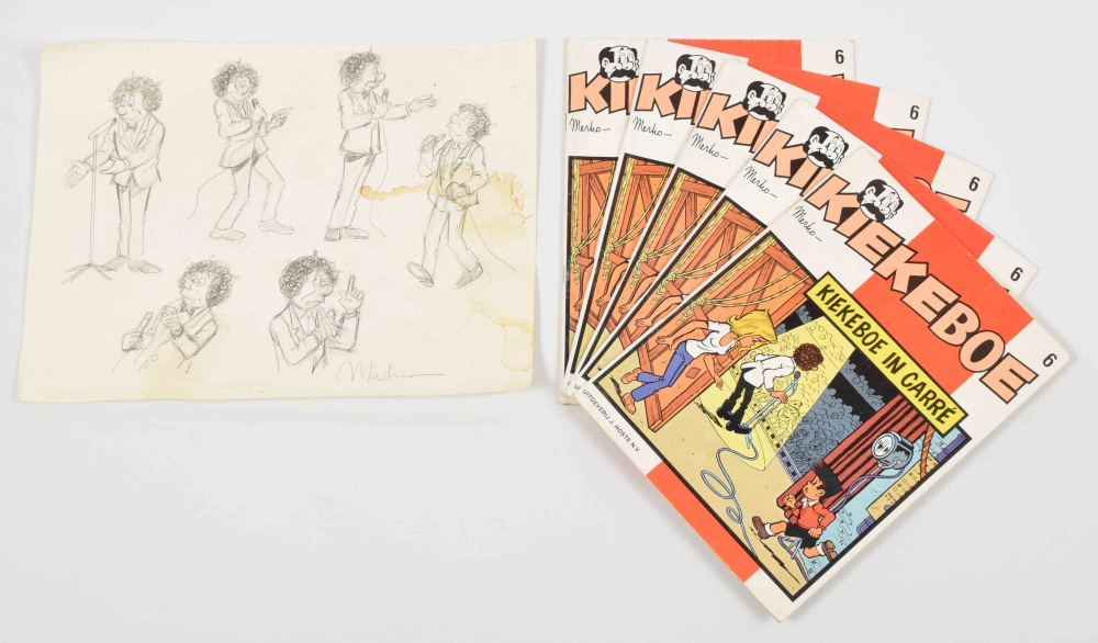 No. 6, Kiekeboe in Carré, J. Hoste N.V., 1979. With leaf filled with study sketches of main character "Herman Gaaikevliet", drawn after Seth Gaaikema. Signed by Mehro. From the personal archive of Gaaikema - and 4 other copies of the album.