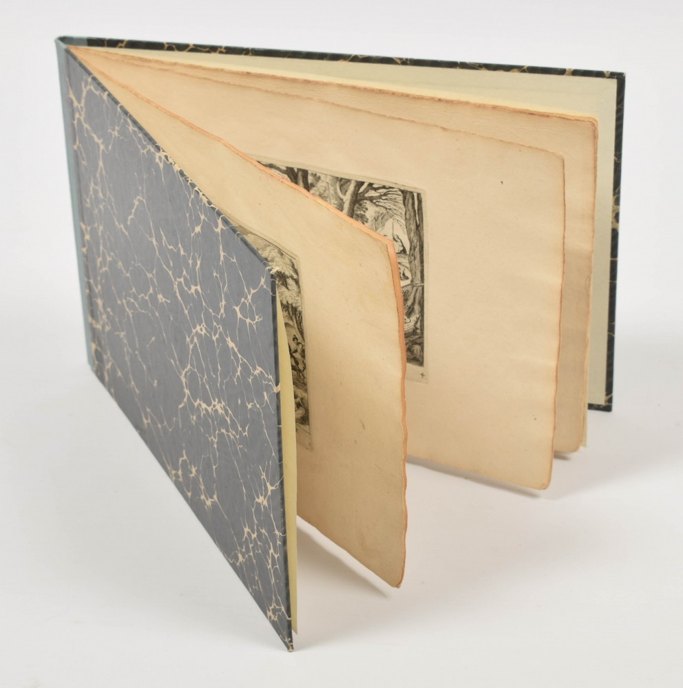 Oblong folio (19.5 x 29.5 cm.) album, halfcloth and marbled cased boards with a complete series of hunting scenes, 16 engravings (10.5 x 14 cm.) with wide margins by C.J. Visscher after Antonio Tempesta. Signed in the first plate: Antonio Tempesti inventor (and) C.J. Visscher excudit. Plates numbered 1-16. Laid paper with watermark. Fine and complete set in new binding with new endpapers.
