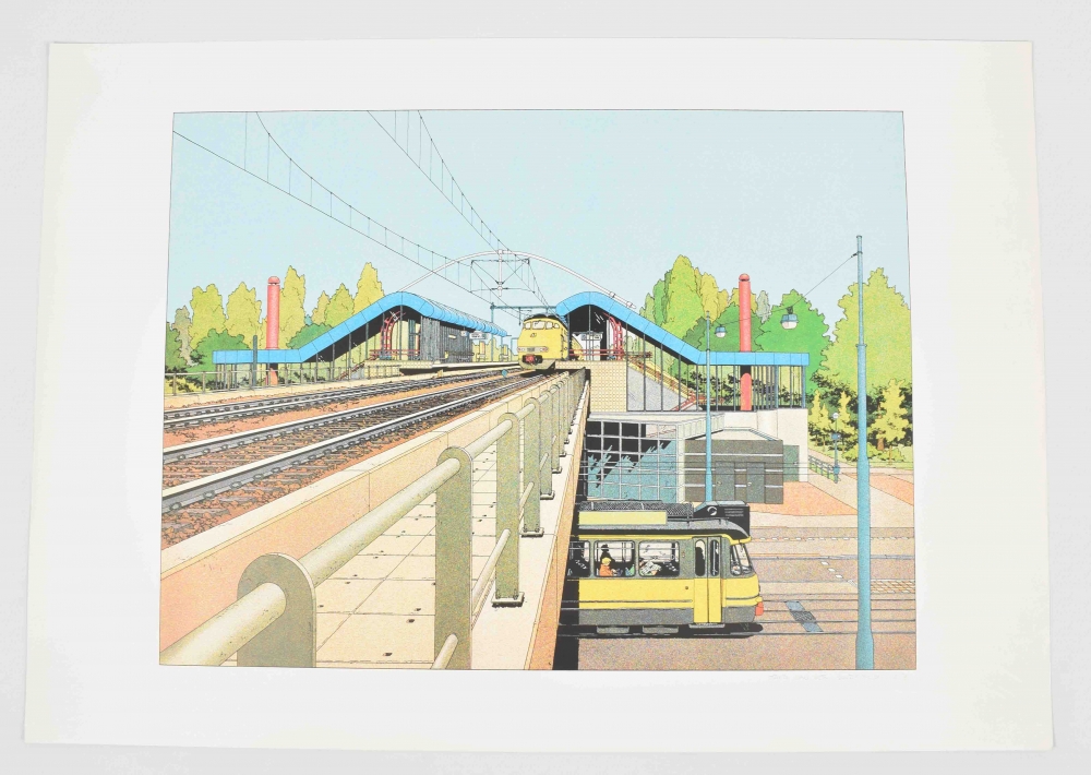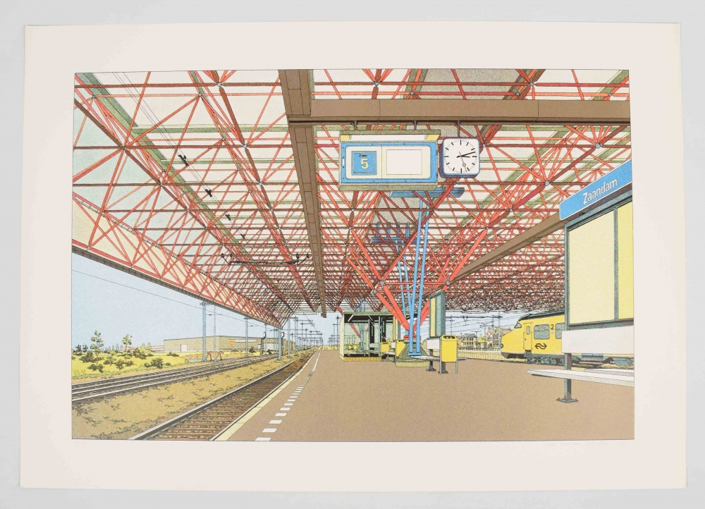 5 screen prints of various Dutch stations. Each copy "e.a." and 55 x 84 cm. Leaf size 70 x 99 cm. Signed by the artist.
