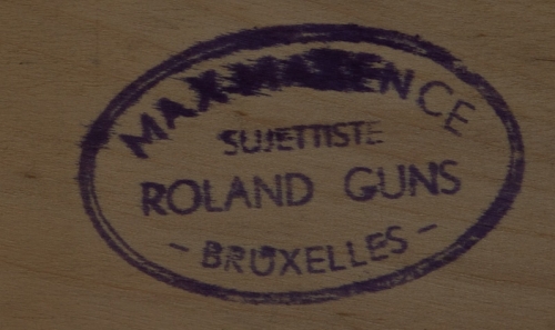 This item contains no English description. See the Dutch description: Houten kinderwandversiering, ca. 1953. Met stempel achterzijde, Maxmaxence, sujettiste Roland Guns, Bruxelles. Ca. 20 x 14 cm.
