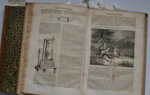 See the Dutch description: Nederlandsch Magazijn ter Verspreiding van Algemeene en Nuttige Kundigheden. Gebr. Diederichs, Amsterdam, 1834 en 1835. De eerste en tweede uitgave van het Nederlandsch Magazijn, januari t/m december. Hardcovers, 416 en 416 p. Met vele ills. in zwart-wit.