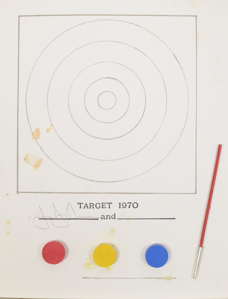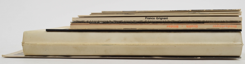 Françoise Janicot, 1971. 24 x 16 cm. [28] p. + Janicot par Brion Gysin. Extrait du catalogue de l'exposition Hepta au musée Galliéra 1967/68, Paris. 5 p. + Technics and creativity II. Catalogue with lithography by Jasper Johns, "Target 1970", signed, 3 paint blocks and foam in plastic box + Made in Belgium. Biennale di Venezia 1980. Hugo Ké - and another 13 catalogues.