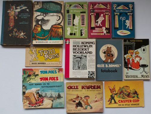 See the Dutch description: -en het Vibreerputje, de Bezige Bij, 1957. 120 p. met oorspronkelijk geplast. omslag + de 2 andere deeltjes uit de serie. Alle drie in goede staat. + De Ruitenjassenvracht, Scheepvaart Vereniging Noord, Amsterdam 1972, 16 p. Oblong, geniet. + Ollie B. Bommel's Fotoboek, De Bezige Bij, Amsterdam, 1952 + Weerbaar en Student, De Ram, Amsterdam 1961 met daarin opgenomen Heer Bommel en de Waarheidsgedachte. Exemplaar met stofomslag in goede staat- en 8 andere.