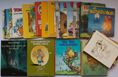 See the Dutch description: De Muinck & Co, 1948. Geb. met linnen rug, goed ex. + Tom Poes, Quaker Oats, 1952 (Hollandse Uitgave), oblong, compleet met 85 gekleurde plaatjes + Tom Poes en de Watergeest, De Bezige Bij, Amsterdam, 1950. Gebonden, met linnen rug. Sleets aan randen en voorplat, binnenwerk goed - en 26 andere.