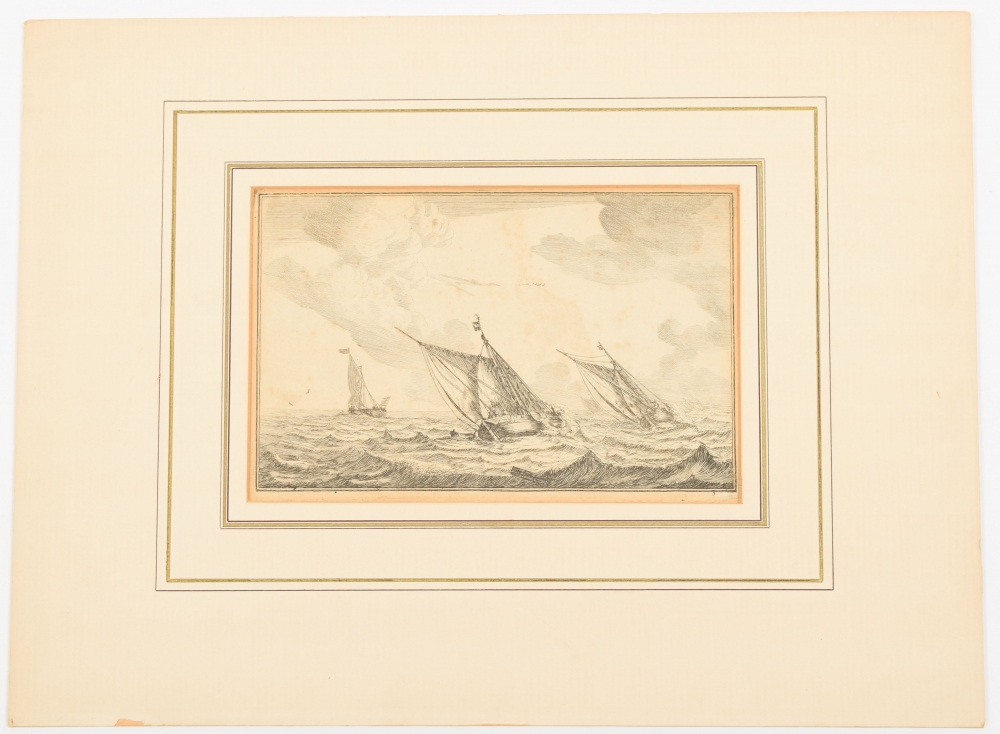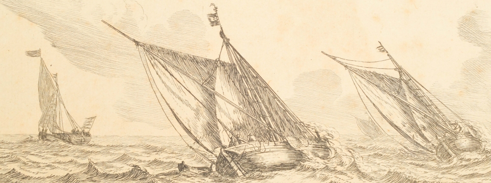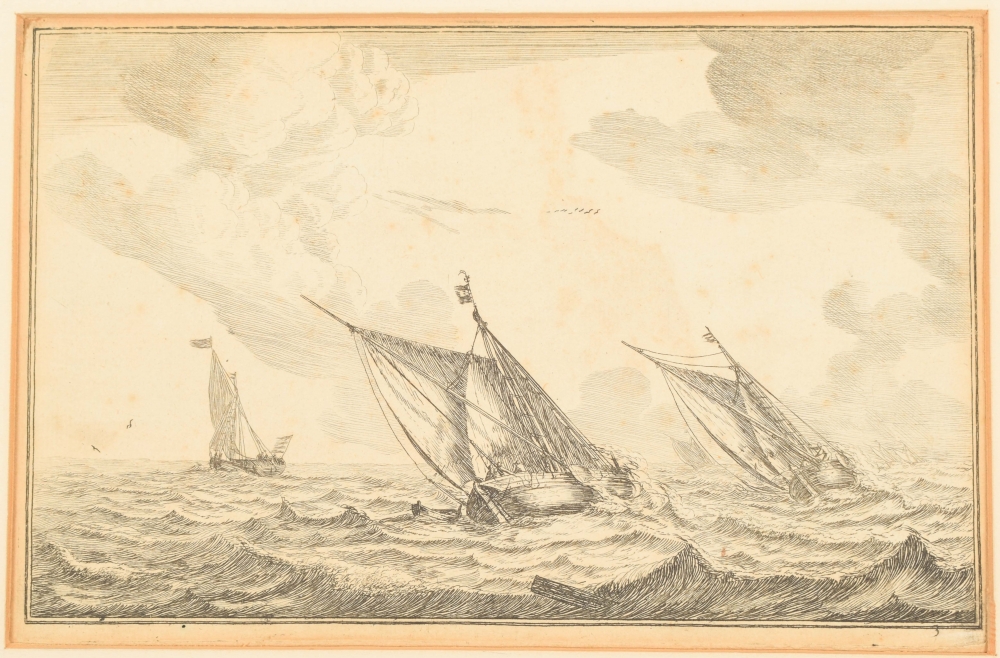 Nine old works of graphic art: (1) Reinier Nooms (1623/1624-1664). (Ships on a rough sea)