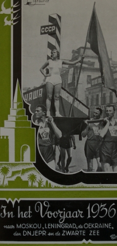 See the Dutch description: Studie-reis voor Artsen naar de UDSSR Moskou, Charkov, Odessa, Kiev, met bezoek aan de belangrijkste Kuur- en Badplaatsen van Kaukasus en Krim 1936, ontw. Keed Selling, uitg. Intourist. + Naar de Sovjet-Unie het land der Onbegrensde Reismogelijkheden (idem). + Winterreisen in die Udssr. 20-bladige folder met ingelegd programma, 1935/1936 van toeristische attracties zoals een bezoek aan het Kremlin, de Isaak kathedraal of een Berenjacht. + 5 andere mbt de UdSSR. + het 10e Sokolfeest, Praag, 1938 - en 1 andere mbt Praag.