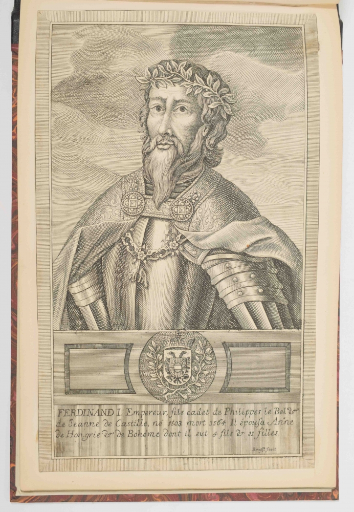 37 portraits mounted on 37 sheets in modern album, half faux leather with marbled boards, oblong (18 x 27.5 cm) by J.L. Krafft resid. Brussels c. 1740-50. Delicate engravings with caption in French.