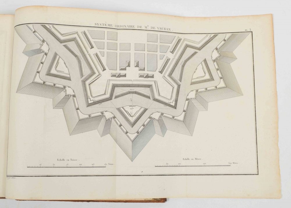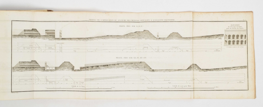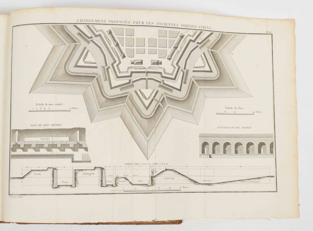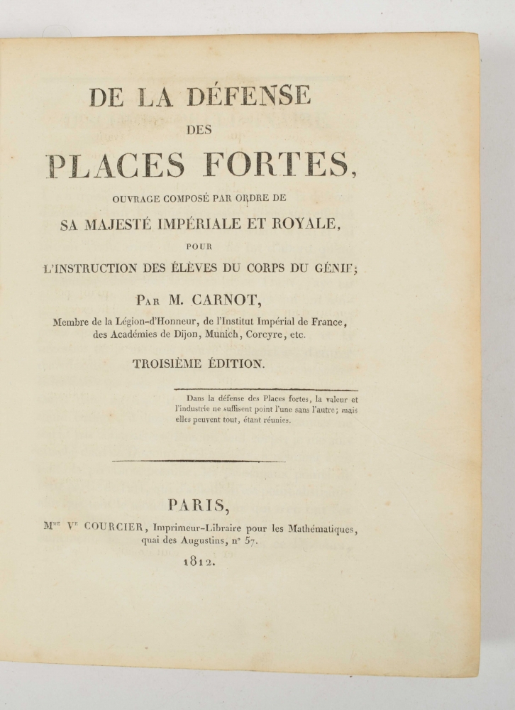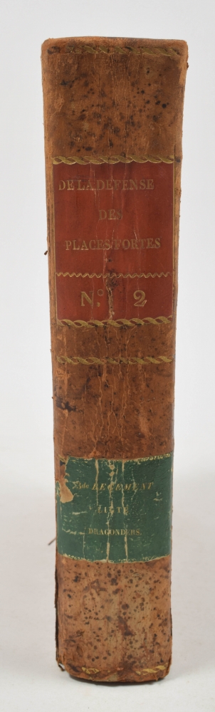 ouvrages composé par ordre (...) mais elles peuvent tout, étant réunies. Lazare Carnot. Paris, Mme. Courcier, 1812. XXXIX, 616 p. 13 folding engravings. Leather, gilt title on spine vignette and ticket with gilt stamping of the "3e legiment ligte dragonders". 4to.