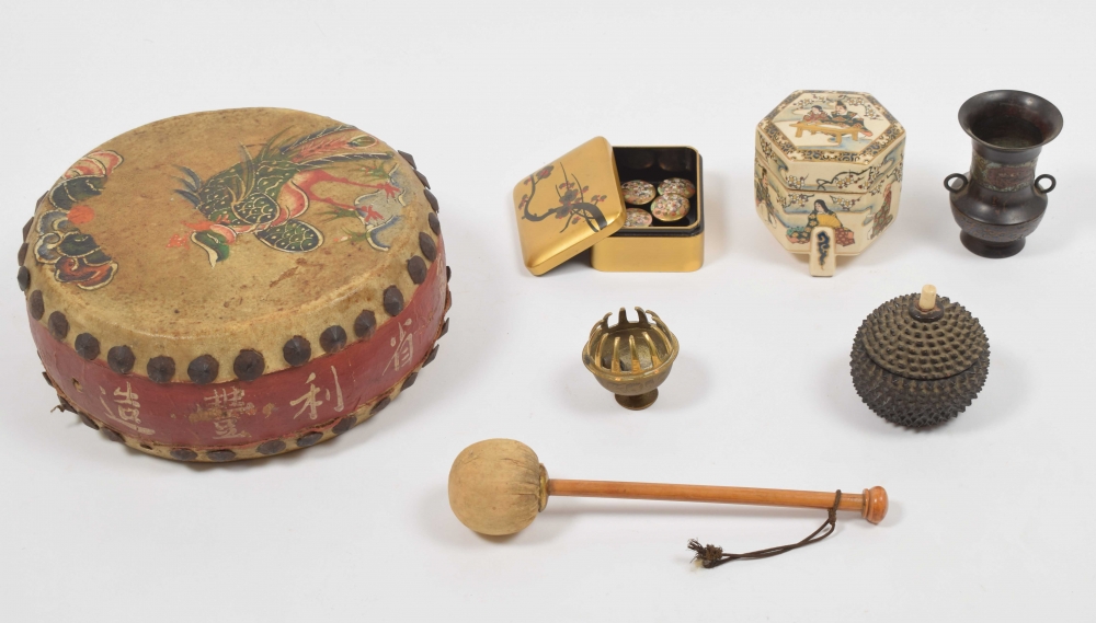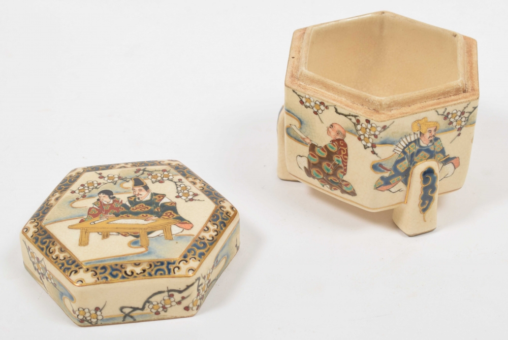 Covered with skin and decorated with dragon + Satsuma lidded box + 4 Satsuma buttons - and 4 more.