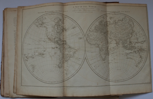 See the Dutch description: Illustrated in LVI Tabels o which IV are introductory & include the Centurys prior to the Ist Olympida, and each of the remaining LII contain in one expanded View, 50 years or Half a Century. Rev. John Blair L.L.D., London, 1790. Uitslaande wereldkaart in 3 dln. + 15 andere uitslaande kaarten. Folio.